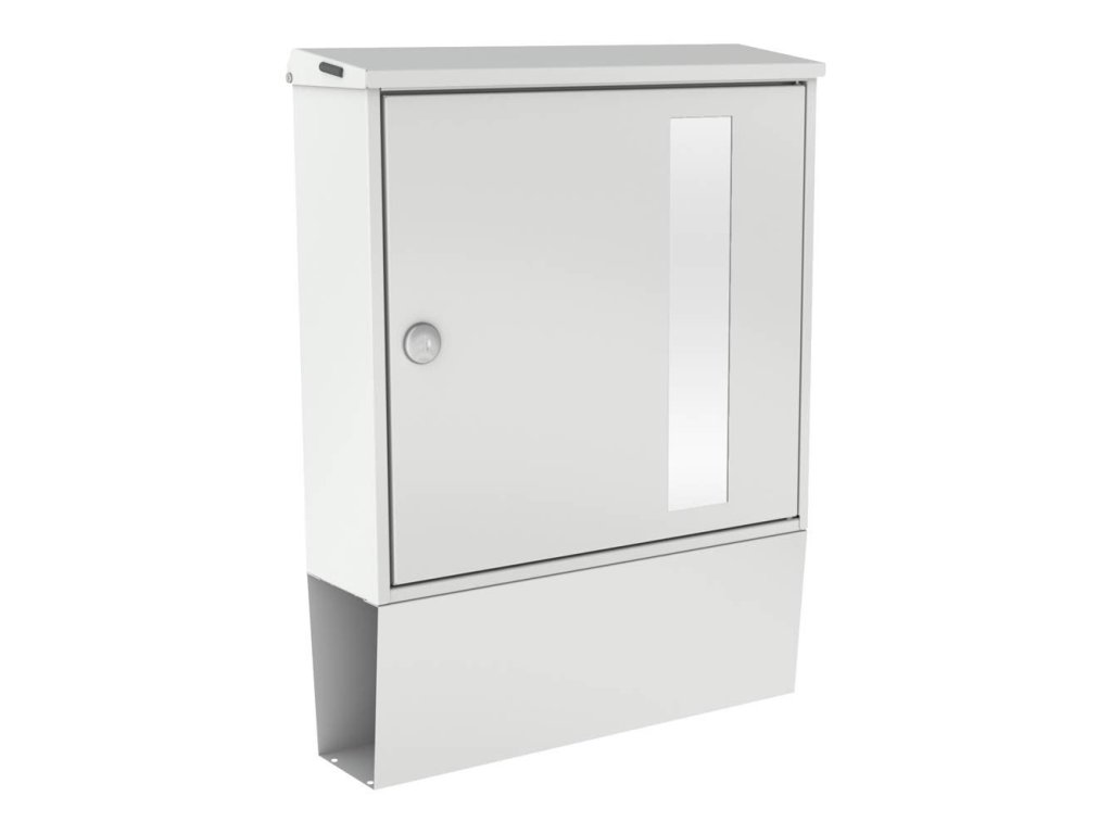 Moderní poštovní schránka s perforací a zadní výplní ze satinovaného plexiskla (Plexiglas Satinice). Vybavena integrovanou přihrádkou na noviny. V souladu s normou EN. Vhoz shora, výběr vpředu. Držák pošty zajišťuje, že dopisy nevypadnou ani při otevřených dvířkách. Určeno pro montáž na stěnu. Pro volně stojící montáž nabízíme vhodné stojany (DF1010, DF1020 a DF1060).