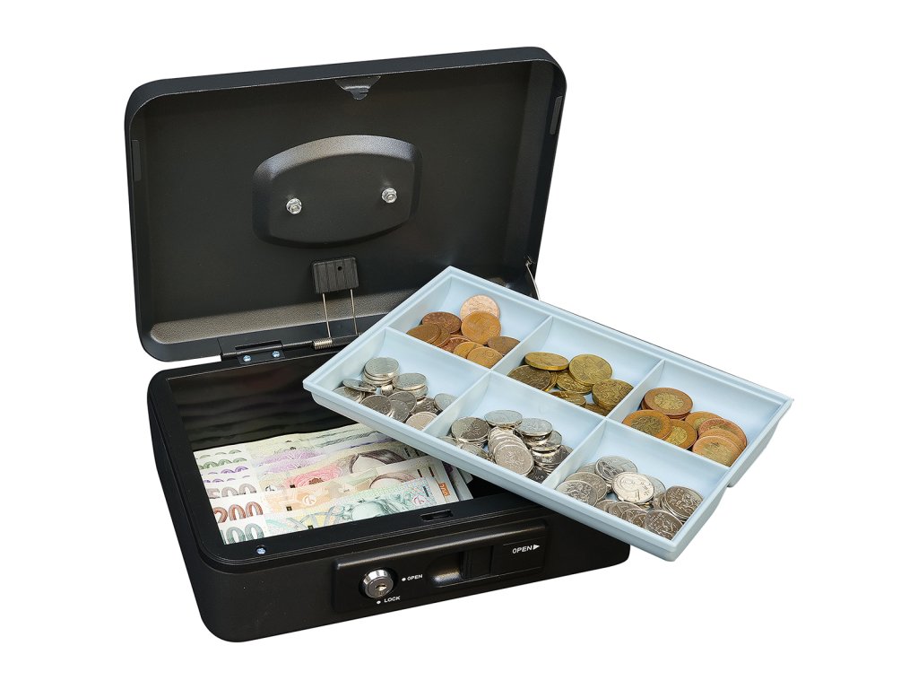 Velká ocelová pokladnička s automatickým otevíráním – 250 mm