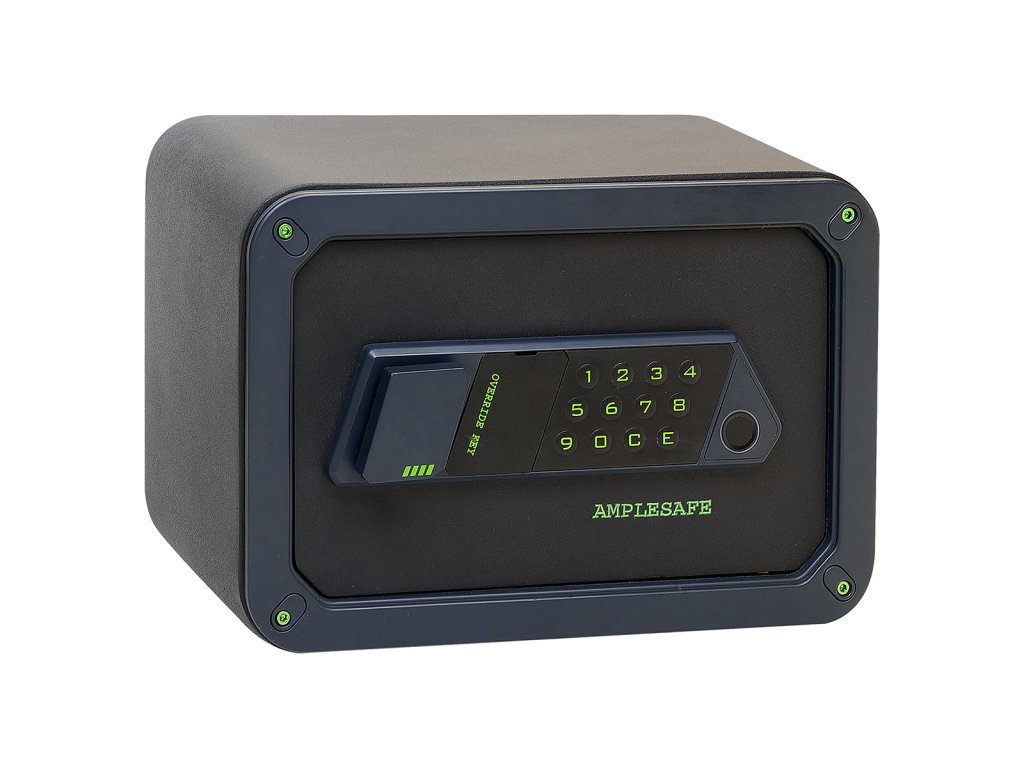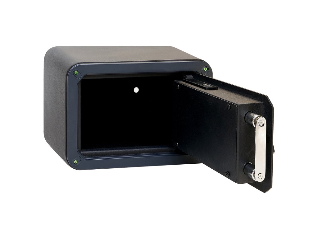 Kompaktní ocelový sejf v černo-šedém provedení se zelenými detaily je ideálním řešením pro domácnosti i menší kanceláře. Nabízí bezpečné ukládání cenností díky čtečce otisku prstu a číselnému kódu s miliony možných kombinací. Sejf lze ukotvit do zdi nebo podlahy a chrání ho speciální tvar zamykacího mechanismu, který znesnadňuje vypáčení.