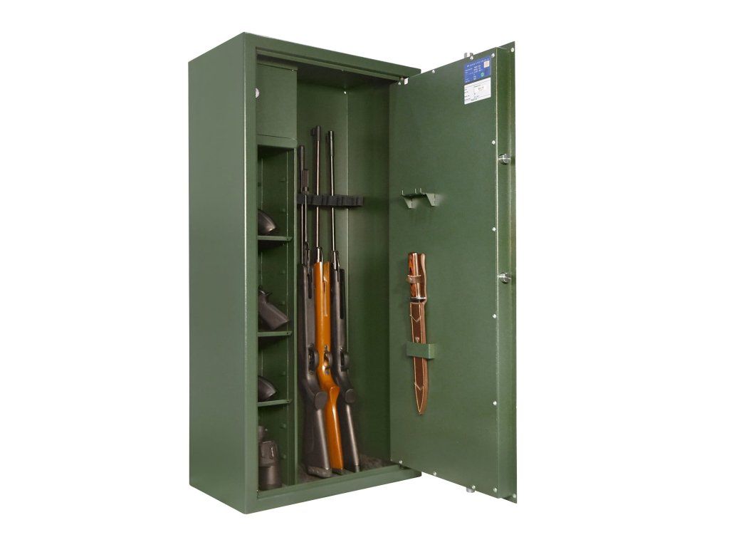 Splňuje požadavky české legislativy, trezor je oficiálně schválen pro uložení až 10 zbraní a 10 000 kusů střeliva.