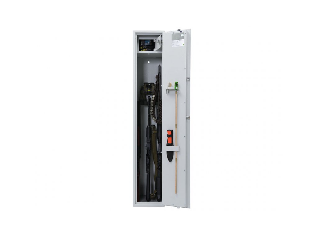 Schránka: výška 145 mm × šířka 249 mm × hloubka 265 mm. Vnitřní výška pro dlouhé zbraně je 1295 mm.