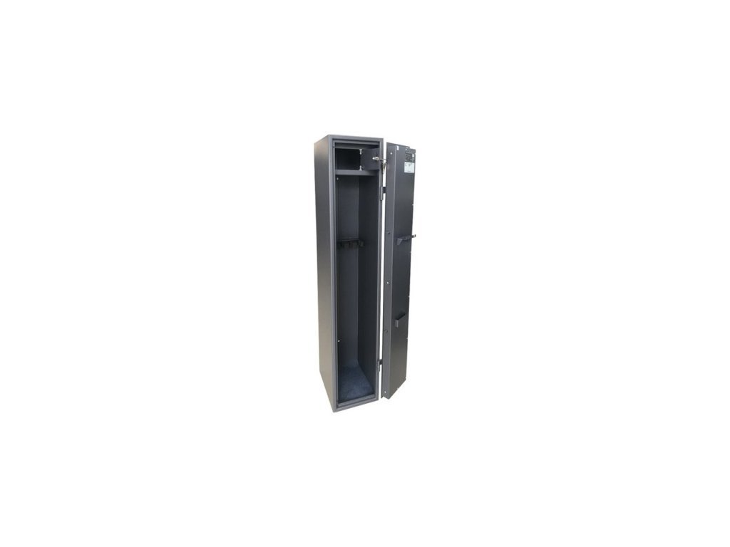 Trezor je určen pro až 5 dlouhých zbraní, vybaven vnitřní schránkou na náboje, příčkou a policí pro přehledné uspořádání.